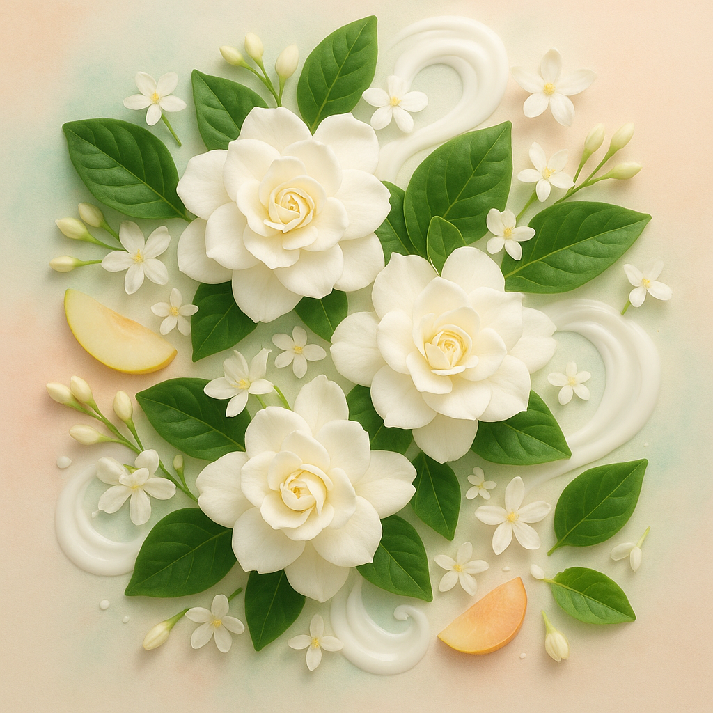 絲滑柔潤的奶香調,溫柔包覆前調與中調,帶來溫暖幸福感。 - 後調・梔子花: