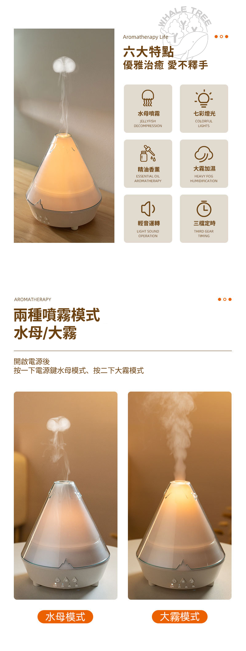 可切換持續噴霧與水母式出霧,營造多層次氛圍。