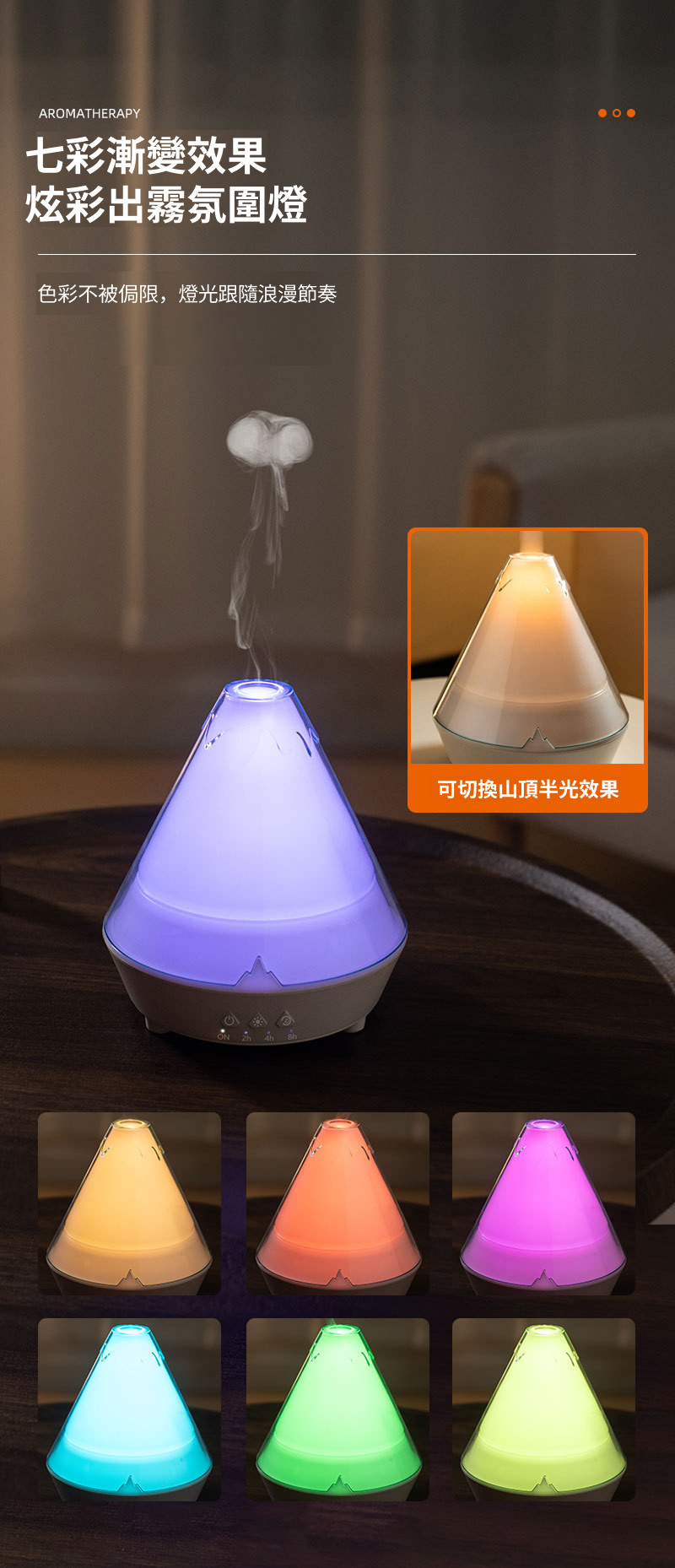 搭配出霧效果,宛如迷你火山,夜晚特別療癒。