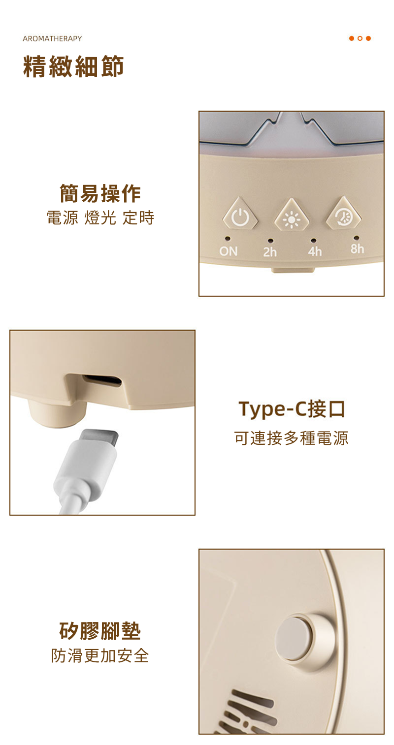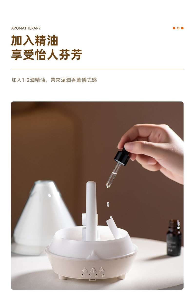 本產品採用超音波震盪技術,透過高頻震動將水與精油分解為極細微水霧粒子,經由氣流擴散至空氣中。